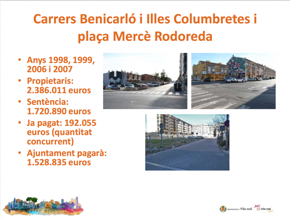Finalment, es pagaran 421.827 euros corresponents a tres resolucions: l'obertura d'un tram del Camí els Voltes, prop de la Depuradora, el carrer Riu Palància, concretament la prolongació del carrer Pobla Tornesa, i la urbanització del jardí situat entre els carrers Furs de València i Molí. “La resta de resolucions les recorrerem per a intentar pagar el mínim”, ha subratllat Benlloch.
