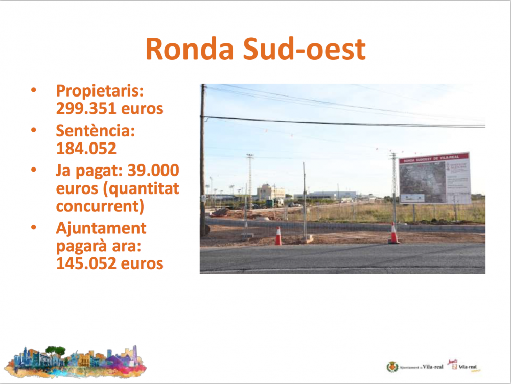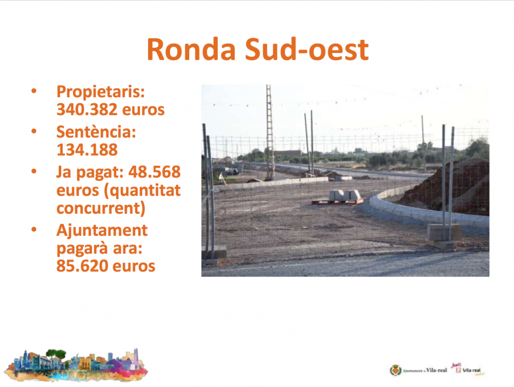 Quant a les sentències, el consistori ha de fer front a quatre sentències fermes del Tribunal Suprem, per valor de 2,1 milions d'euros que corresponen a l'aparcament situat entre el carrer Joanot Martorell i les avingudes Mediterrani i França; l'obertura dels carrers Benicarló i Illes Columbretes i la plaça Mercè Rodoreda; i dues sentències de propietaris que van recórrer la valoració de les expropiacions per la ronda Sud-oest.