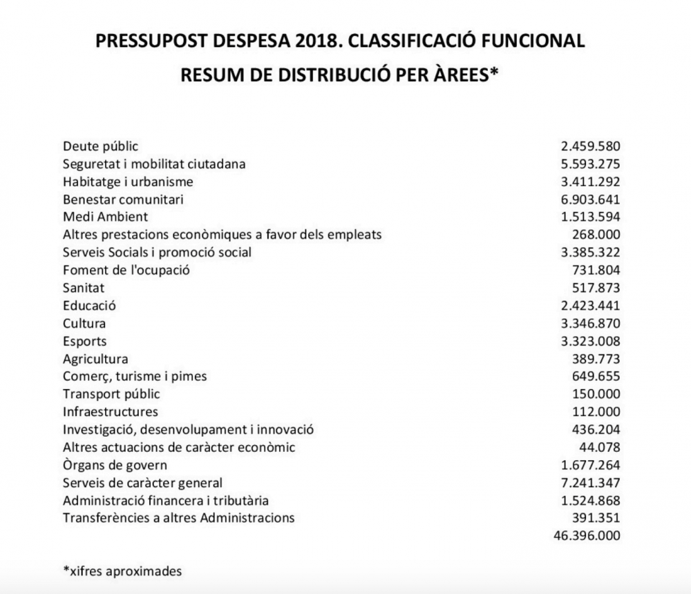 “En definitiva, un pressupost responsable i possible, que només incrementa en 750.000 euros pel que fa al de l'any passat, però amb el qual seguirem consolidant el model de ciutat per a les persones i generadora d'oportunitats”, conclou Benlloch.