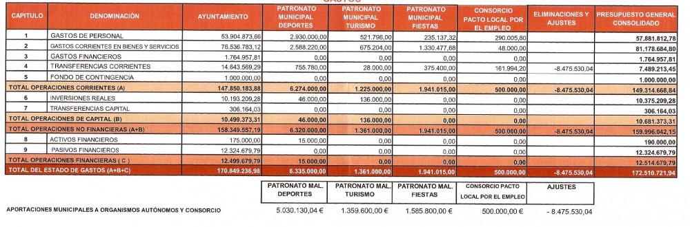 Los organismos autónomos también verán incrementado sus respectivos presupuestos, añadió. “El Patronat d’Esports crecerá hasta los 6,3 millones (+6%); Fiestas hasta los 1,9 millones (+16,6%) y Turismo hasta el 1,3 millones (+26%). De los 170,8 millones de euros, el presupuesto comprometido asciende a 113 millones que corresponden fundamentalmente a las partidas de personal, gasto corriente y endeudamiento”.