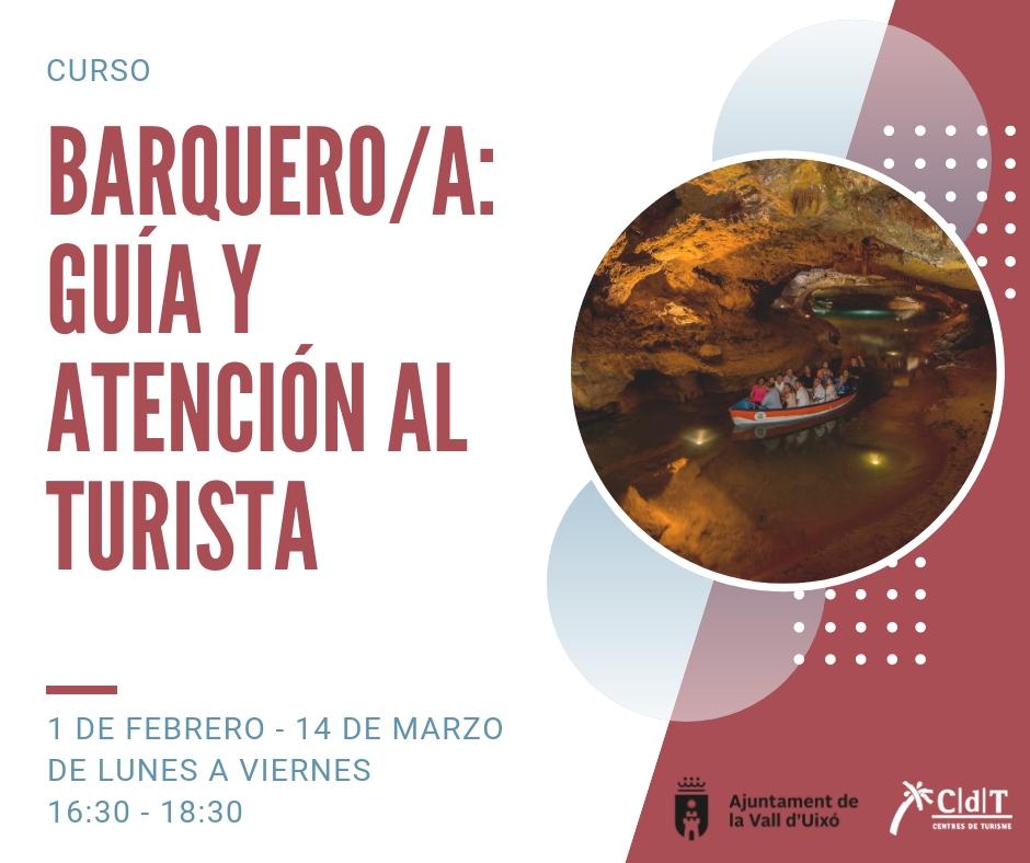 CURSO BARQUERO_A_ GUÕA Y ATENCI”N AL TURISTADebido a la singularidad de esta actividad, que solo se realiza en la Vall d’Uixó de prácticamente todo el territorio nacional, “nos encontramos con dificultades para encontrar perfiles cualificados para prestar este servicio”. Por eso se ha convocado este taller “para formar a personas que puedan presentarse a la bolsa de barquero que convocaremos en los próximos meses, de cara a cubrir la campaña de verano, cuando crece la demanda”.