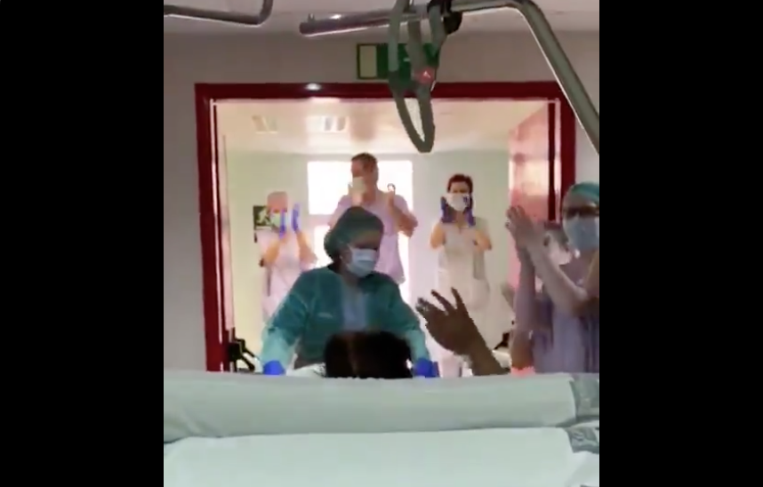 ▶️ El personal sanitario del Hospital General de Castellón celebra con aplausos la primera salida de la UCI de una paciente con #coronavirus. Gestos como este nos hacen mantener la esperanza de que #EsteVirusLoParamosUnidos pic.twitter.com/7C7DSxWHHy