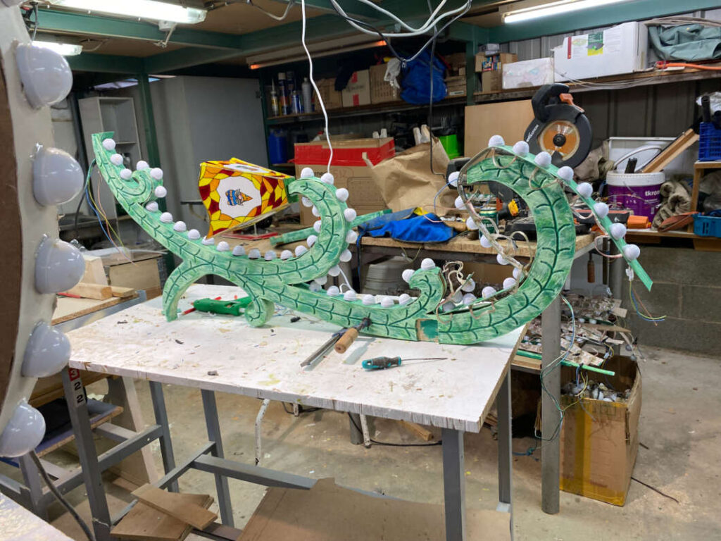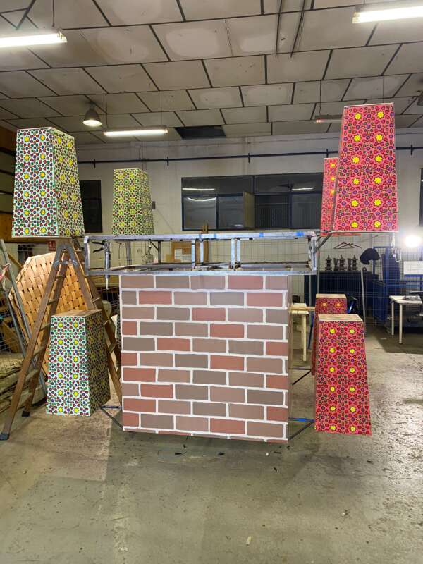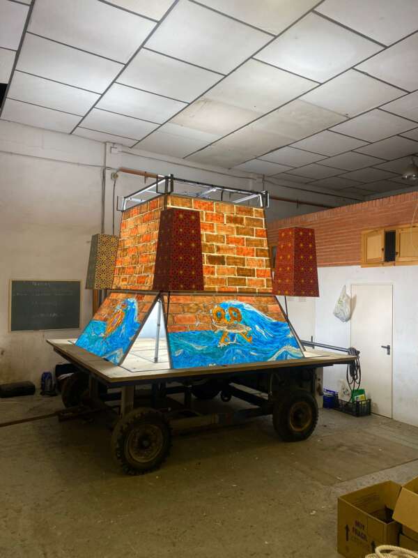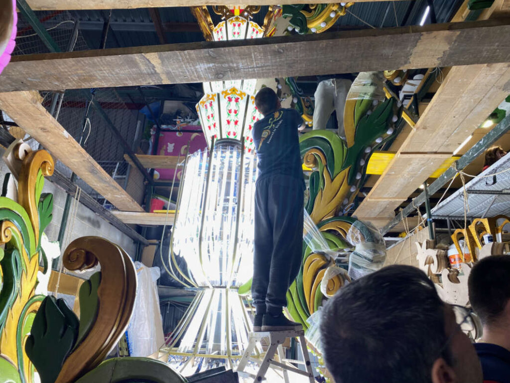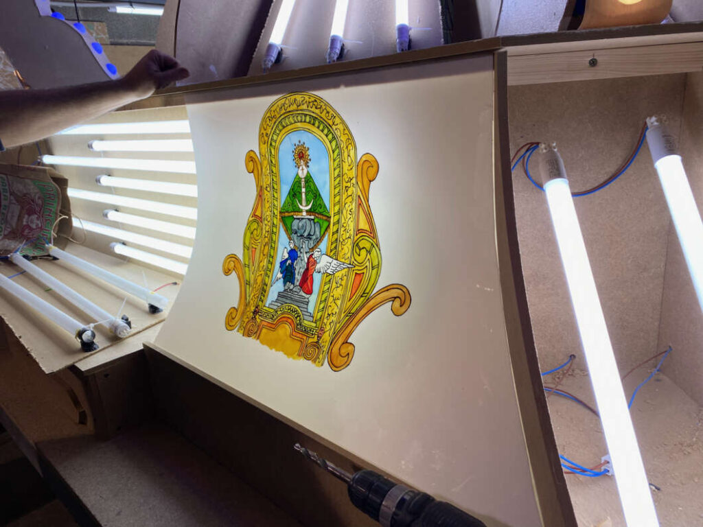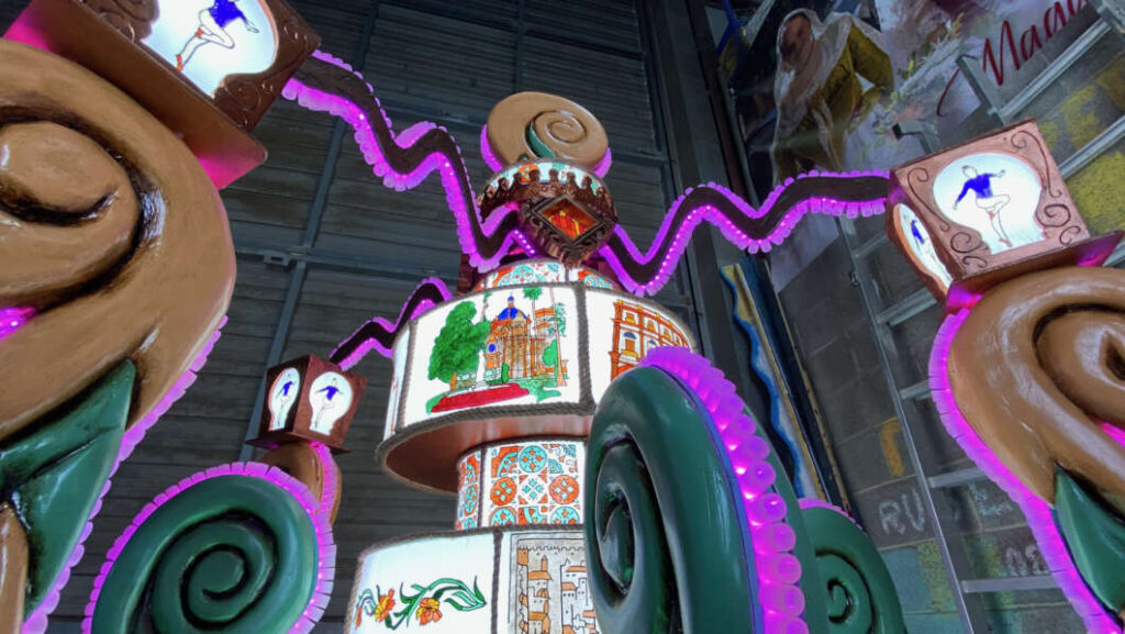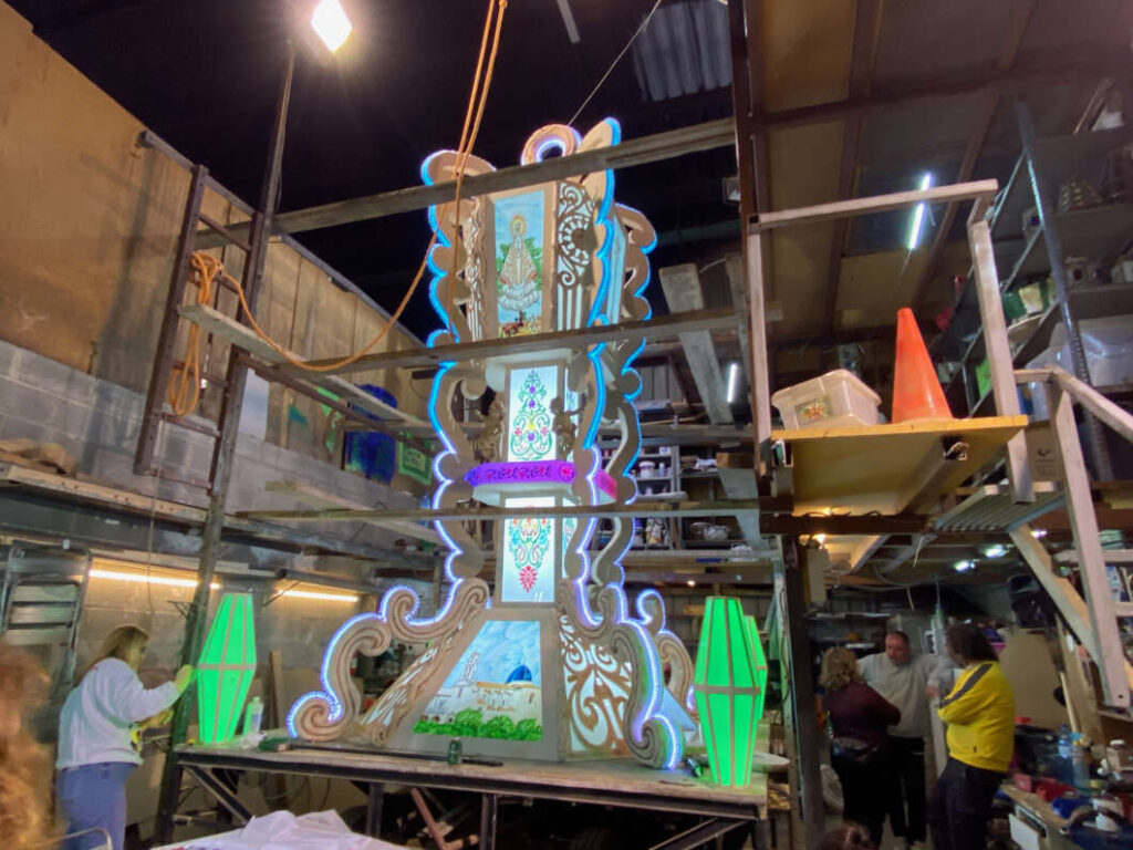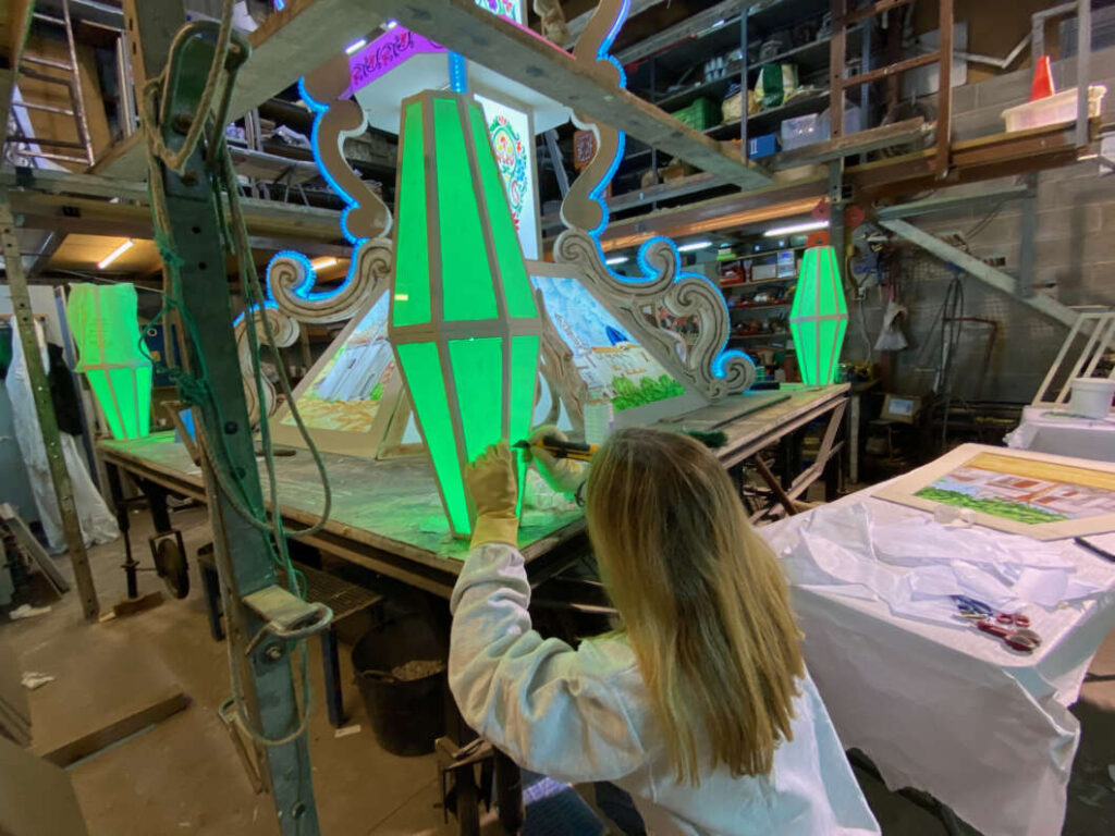 Y luego empieza la construcción, con el esqueleto de la Gaiata sobre esa planificación. Es como una novia, desde su armazón, la instalación eléctrica para las luces y luego los detalles, hasta vestirla por completo. Cuando están terminadas, las gaiatas se bautizan y se realiza una primera fiesta privada en su honor con presencia de sus madrinas, y resto de la Comisión.
