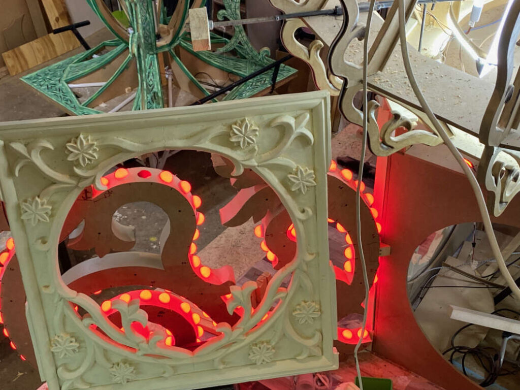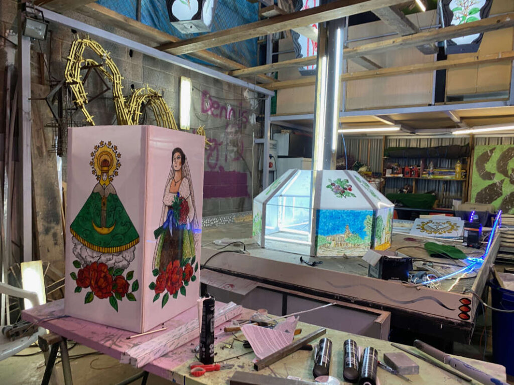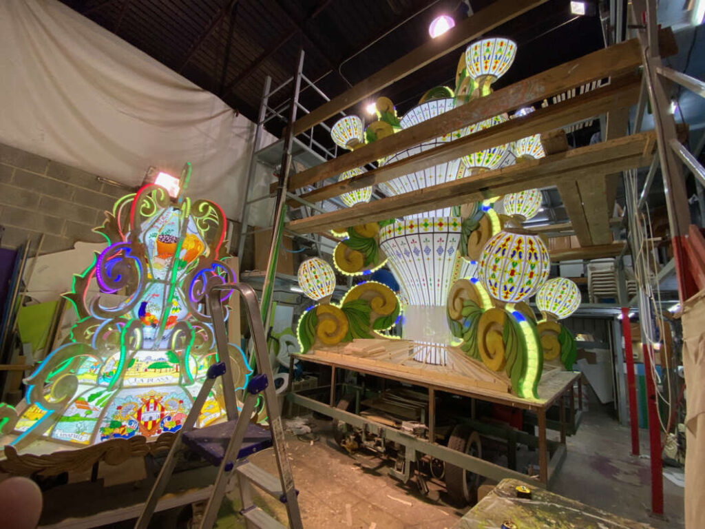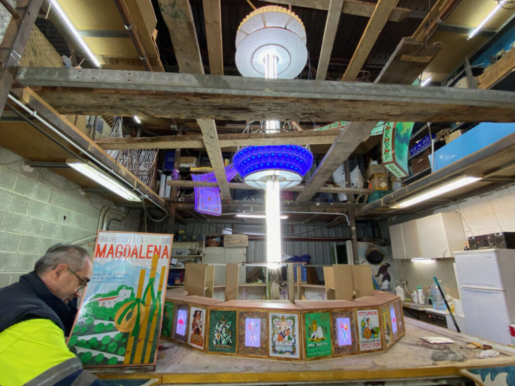 El almacén de Gaiatas Pepín Marco de Castellón pone la directa para completar a tiempo los monumentos de luz que lucirán en los sectores de la ciudad esta próxima Magdalena 2024. Y ayer viernes se realizaban los bautizos de muchos de ellos.