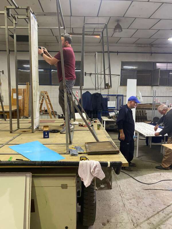 Hay Gaiatas que pueden permitirse la colaboración de un ‘artista gaiatero’. Otras no. Y en función de sus integrantes, dentro del sector hay varios equipos, uno de ellos es el de ‘matadero’, nombre que se da coloquialmente al almacén de Gaiatas, en relación con el origen de esas instalaciones. Pero suele suceder que, cuando aprietan las prisas, muchos miembros de la comisión, acuden para echar una mano, pintar los brazos, los faroles, las vidrieras… familias enteras que dedican su tiempo libre y de fines de semana para la construcción del Monumento. En otros, todo el trabajo reside en La Comisión.