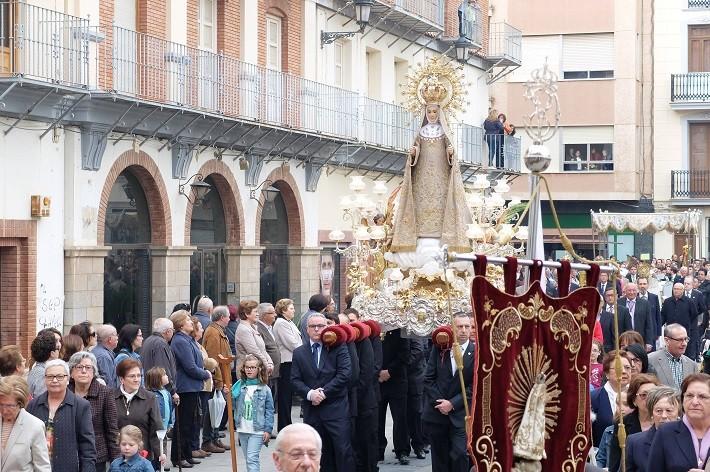 Nules clausura la Semana Santa con una alegre y vistosa procesión en la que se ha producido el esperado Encuentro entre la Virgen de la Soledad, patrona del municipio, y la figura de Jesús, que este año ha sido sustituido por la Custodia bajo Palio, transportada por Mosén Badenes.