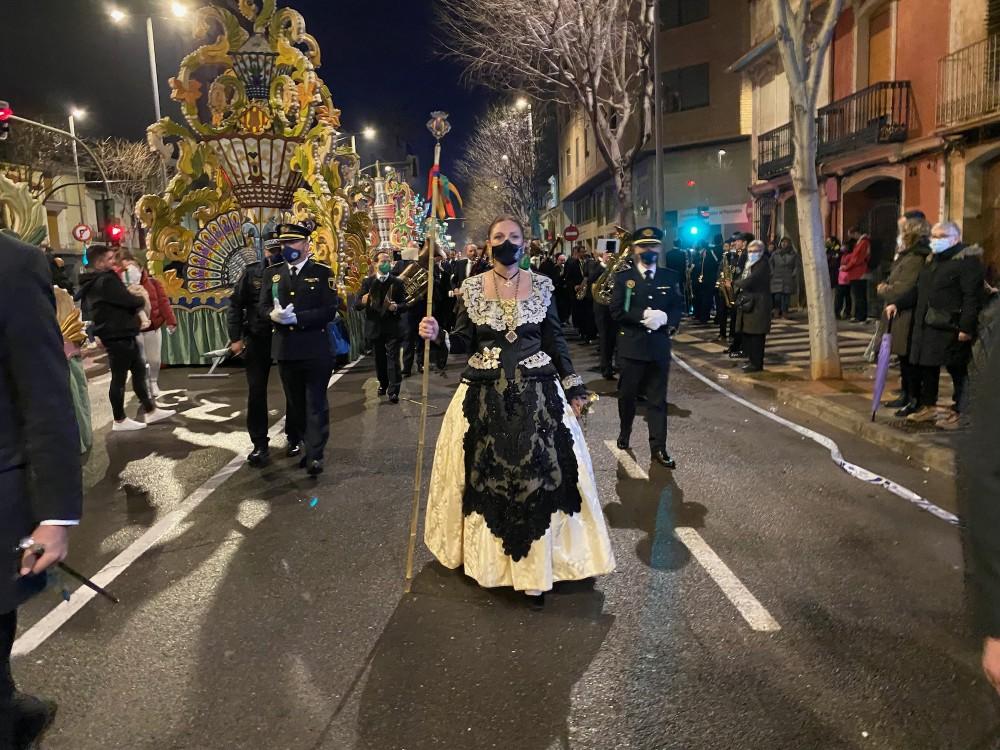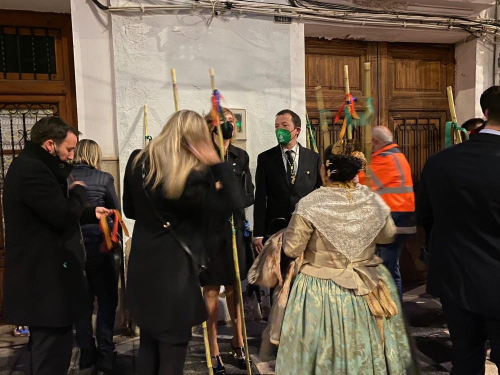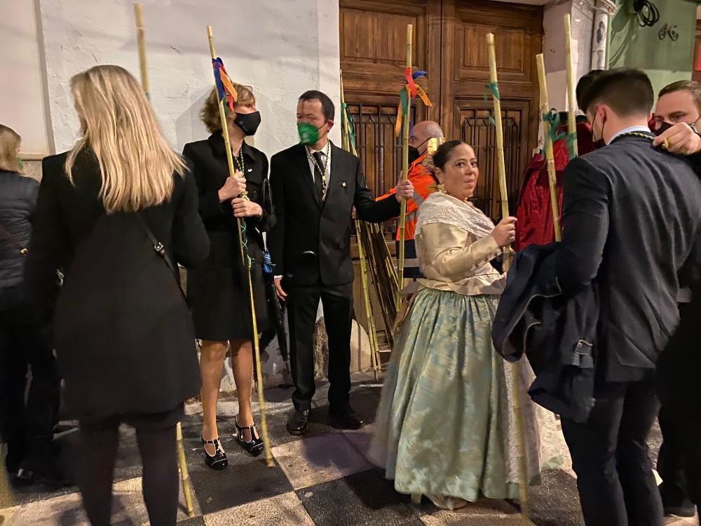 A principio de la calle Sant Roc esperaban los maceros y los policías municipales con sus trajes de gala, además de la Banda Municipal.