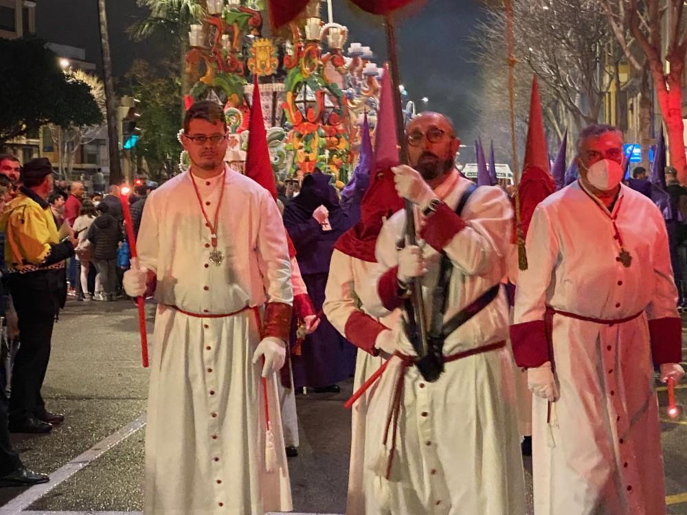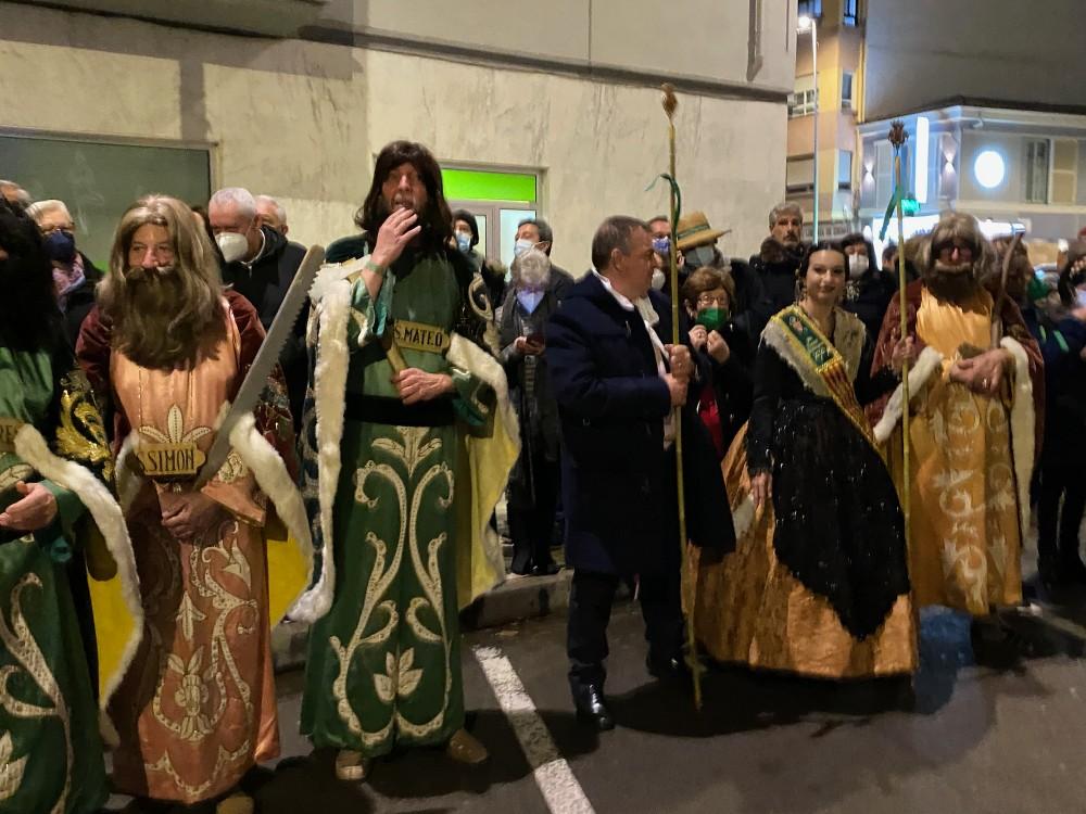 Finalmente, desfiló la Cofradía de la Sangre, a la que acompañaba el Colegio Apostólico con los 12 apóstoles, entre los que se encontraba un pelirrojo y muy llamativo presidente de la Diputación, prácticamente irreconocible.