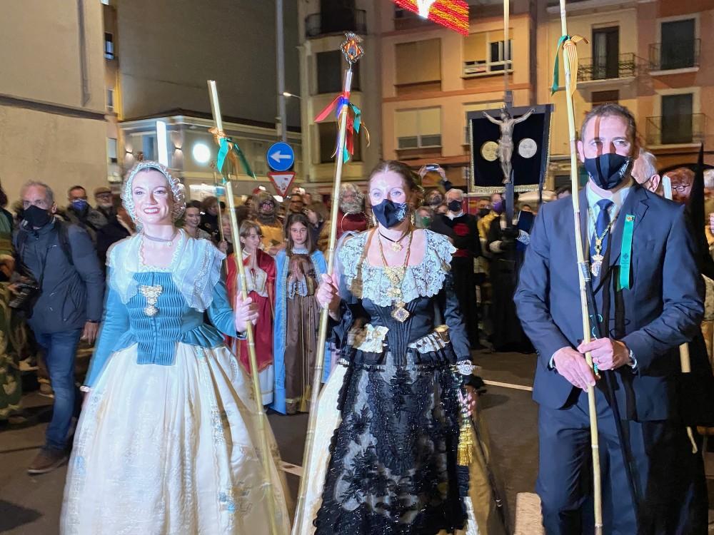 La Hermandad Paz y Caridad, como le tocaba, inició la procesión religiosa y fue a buscar los carros de ‘les caigudes’ de la Magdalena, que tenían que incorporarse a la procesión de penitentes. Después desfilaba la Cofradía de Santa Magdalena con su banda de tambores.