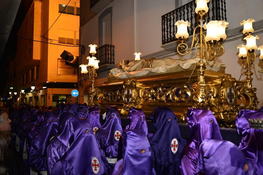 Todas las cofradías del municipio han partido de la Iglesia Arciprestal, incluidas el Santo Sepulcro y la Hermandad de Tierra Santa, que no lo hicieron el pasado miércoles santo. Algunas de ellas han tenido que improvisar lonas y plásticos para cubrir sus peañas y evitar que las ligeras precipitaciones lastimaran sus imágenes.