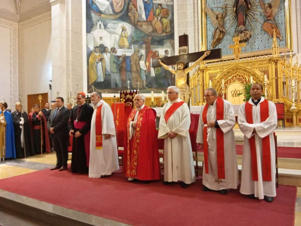 Una procesión que estaba acompañada por los estandartes de cada una de las cofradías de Semana Santa y la Banda de cornetas y tambores de la Hermandad de Jesús Cautivo y Nuestra Señora de la Merced.