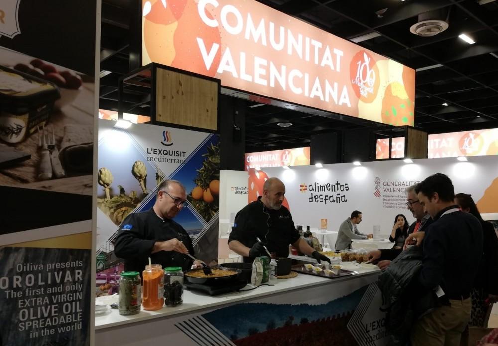 El estand de la Comunitat Valenciana, de 563 metros cuadrados, cuenta con la presencia de diversas empresas de aceite, licores artesanos, especias, frutos secos, aceitunas, turrones y otros dulces, conservas y salazones así como otros preparados alimenticios.