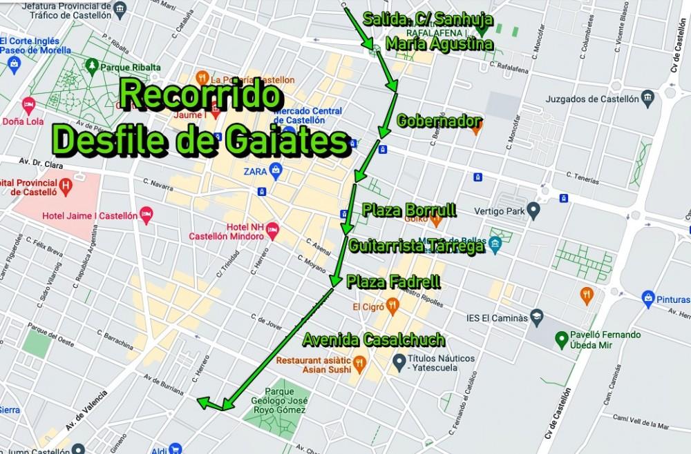 20.30h. Desfile de Gaiatas y Gaiatas de Mano que partiendo de la calle Sanahuja recorrerá las calles Gobernador, Pza Borrull, Guitarrista Tárrega, Plaza Fadrell, Avenida Casalduchhasta esquina con Avenida de Burriana, al finalizar cada Gaiata se trasladará a su sector.
