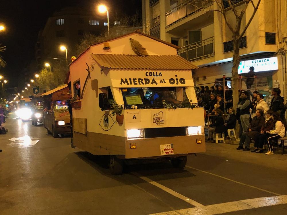 19:30h. Los vehículos engalandos entran en la ciudad por el Forn del Pla, precediendo a la Tornà.