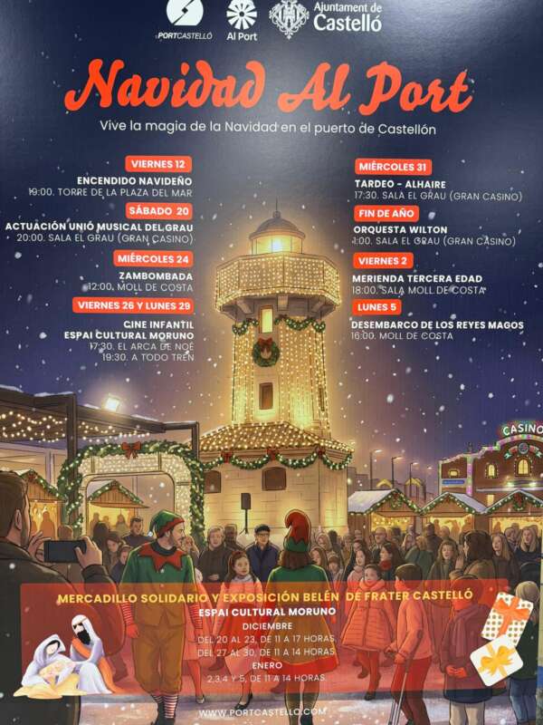 La programación se completa con el concierto escénico de la Unió Musical del Grao basado en el cine con partituras del conocido compositor Hans Zimmer, el concurso de postales navideñas, la fiesta de Fin de Año y el esperado desembarco de los Reyes Magos el 5 de enero, lo que configura una variada oferta que pretende atraer tanto a familias de Castelló como a visitantes de la provincia.