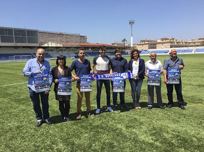 El Campo Municipal de San Fernando ha acogido esta mañana la presentación de la Promoción de Ascenso a la Tercera División que el CD Burriana jugará en las próximas semanas. El presidente, Vicente Llopis, junto al concejal de Deportes, Vicent Granel, el entrenador del equipo, Sergi Escobar, el capitán, Agustín Barrachina, y la vicepresidenta de la Federació de Comerç, Eva Llidó, han presentado la iniciativa que espera llenar el campo para el primer partido de la promoción, el domingo 29 de mayo.