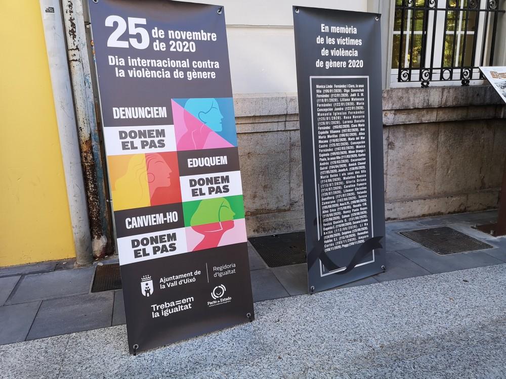 width=Dia Internacional de l'Eliminació de la Violència Contra les Dones, des de l'àrea d'Igualtat s'han col·locat cartells amb missatges de suport i reivindicació en diferents punts del municipi i la Biblioteca compta amb una prestatgeria per a fomentar la igualtat i la ruptura d'estereotips a través de la lectura des de la infància.