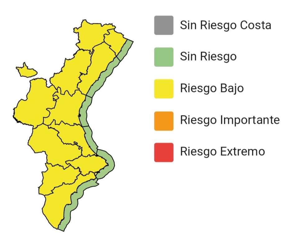 Eso sí, en el sur de la provincia de Castellón el nivel decretado es el naranja por lluvias fuertes