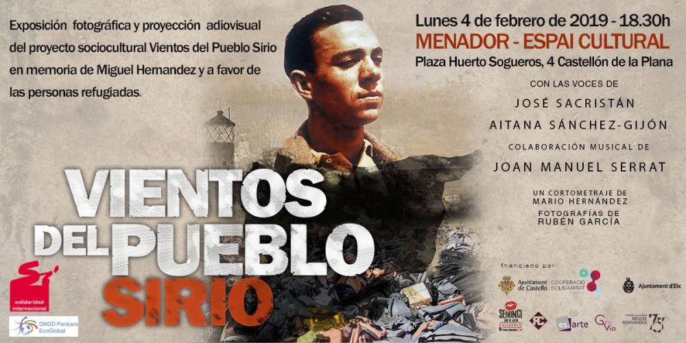 En este mismo acto, se proyectará por primera vez en Castelló el corto documental 'Vientos del Pueblo Sirio', escrito y dirigido por Mario Hernández, con las voces de Aitana Sánchez Gijón y José Sacristán y con la colaboración musical de Joan Manuel Serrat. Tras el visionado tendrá lugar un debate con representantes de Solidaridad Internacional, la ONGD Pankara Ecoglobal y el público asistente.