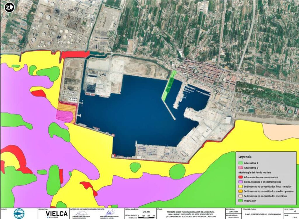 De haberse elegido esta ubicación, el estudio proponía la construcción de un criadero y área de pre-engorde en tierra, en la parte oeste. En el mar contemplaba la instalación de 10 RAS para la cría del alevín hasta alcanzar un peso de 10 Kg. Y también establecía instalaciones para los atunes reproductores y puesta de huevos.