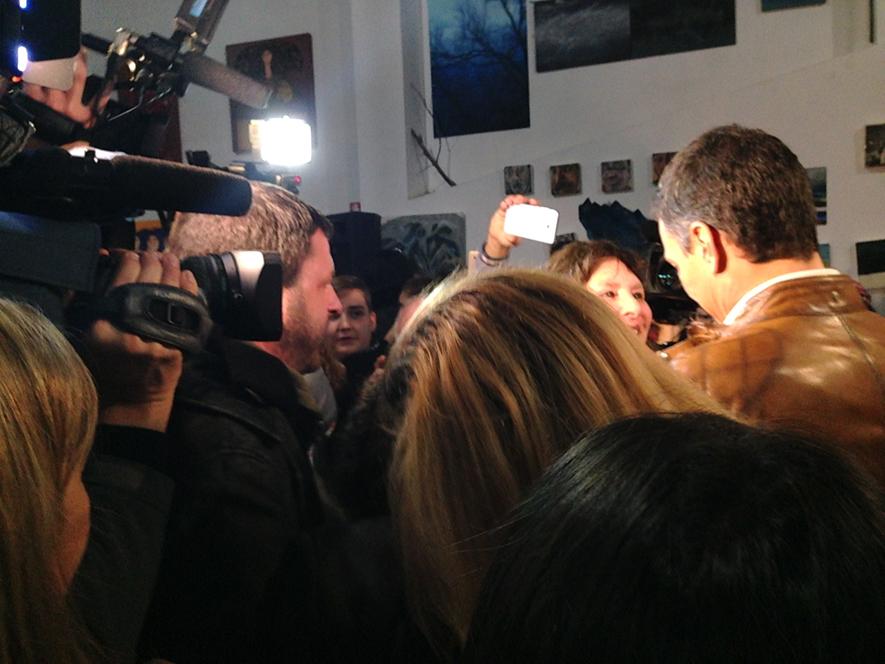 Llegó con algo de retraso. La sala donde se iba a celebrar el acto, el centro cultural la Bohemia, ya tenía copadas todas las sillas dos horas antes, y estaba a rebosar de militantes y prensa. De hecho, se superó el aforo, no todos pudieron entrar, por lo que hubo gente que tuvo que esperar en la calle a verlo llegar y verlo salir.