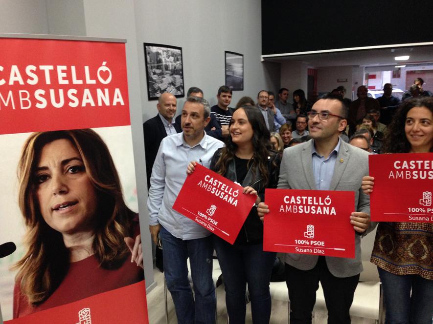 Militantes del PSPV- PSOE de la provincia de Castellón se concentraron esta tarde noche en la sede provincial y local del partido, para lanzar la campaña de apoyo a las aspiraciones de Susana Díaz, como secretaria general del partido.