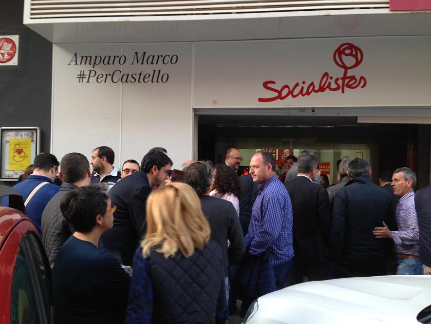 El revuelo se inició en la entrada, donde unos y otros saludaban, daban abrazos, estrechaban manos y formaban corro en torno al secretario de la agrupación de Vila-real, José Benlloch, que lidera esta opción en las elecciones internas del Psoe.