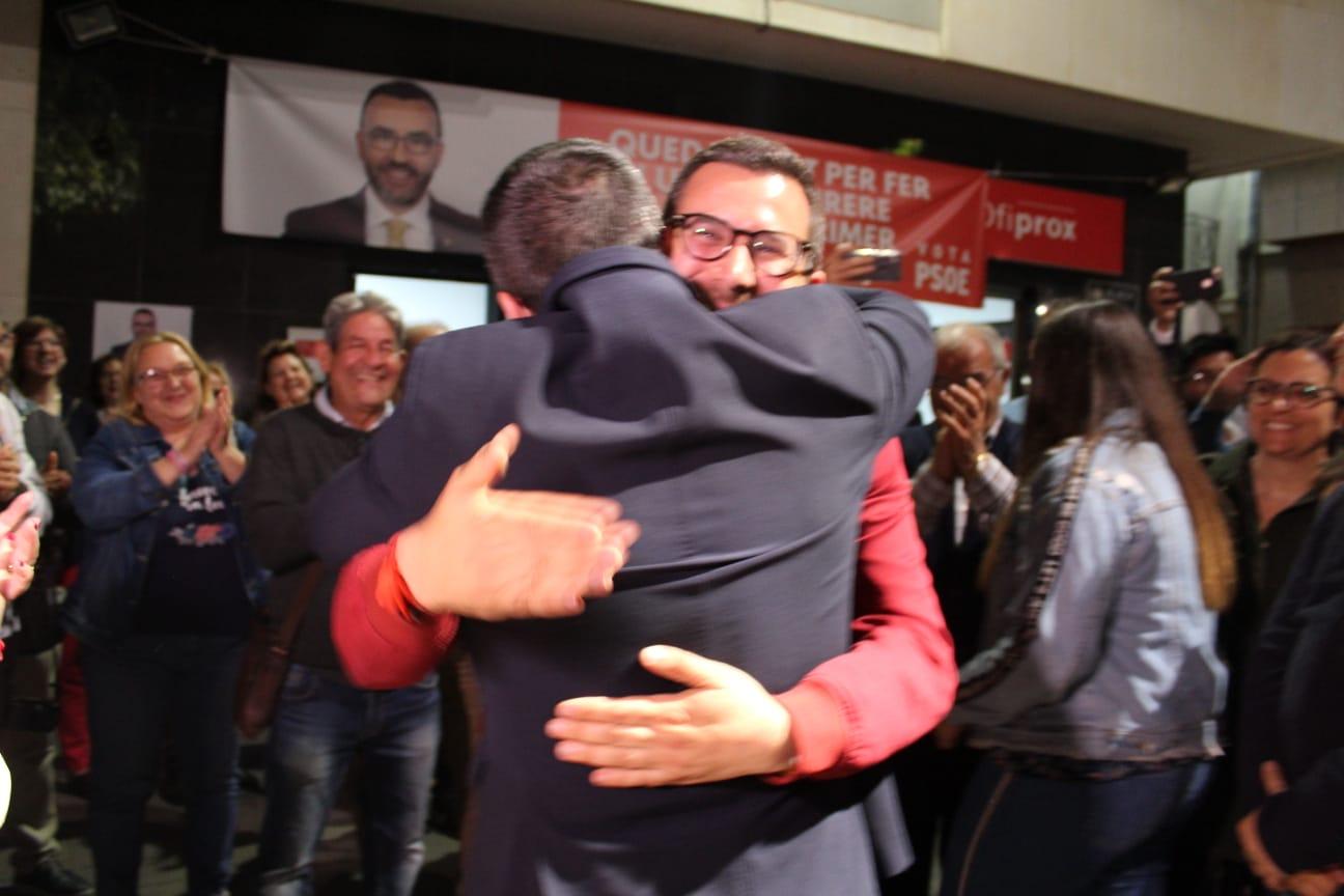 En aquests moments només em resta donar les gràcies també a tot l’equip que s’ha deixat la pell i que no apareix precisament en primera fila. No ens oblidem tampoc de la gent que ens ha deixat i de les situacions difícils viscudes en aquest temps, la qual cosa ens ha fet enfortir-nos com a col·lectiu. Aquesta campanya no hauria estat possible sense la il·lusió de la nostra gent. Una il·lusió que es manté intacta i com el primer dia per aquest gran projecte que segueix ben viu. Enhorabona al PSPV-PSOE i també als partits que han accedit a l’Ajuntament.