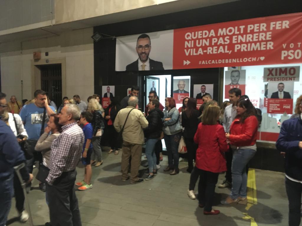 Candidats, militants, simpatitzants i familiars que estaven en l’oficina de Proximitat del PSOE, darrere just de l’Ajuntament, estaven eufòrics després de tancar-se l’escrutini i en l’ambient es respirava molta alegria. Just el contrari que la seu de Compromís i la del PP, amb cares llargues pels resultats obtinguts.