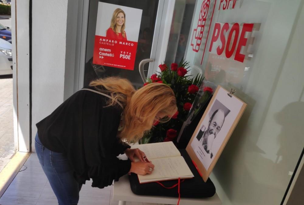 El PSPV-PSOE ha ubicado un libro de firmas en la puerta de su sede en Castelló para que a lo largo de la mañana, todos los militantes y ciudadanos que quisieran dejar un mensaje de despedida a quien fue secretario general del partido, pudieran hacerlo. Los primeros en firmar han sido el secretario general provincial, Ernest Blanch, la vicesecretaria primera, Ana Edo, y el director de campaña y alcalde de Sot de Ferrer, Ramón Martínez.