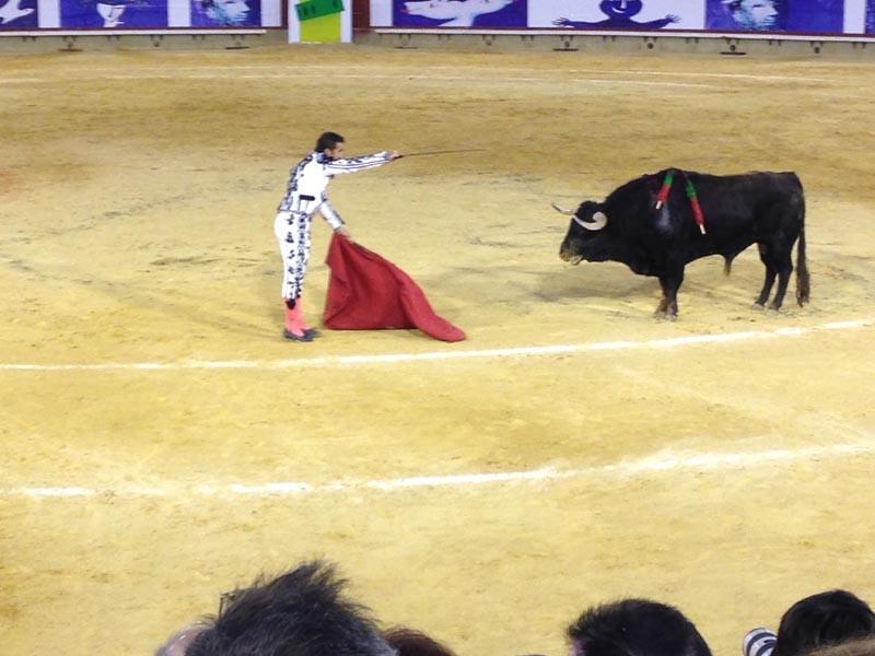 Llegaba el cuarto de la tarde, que no fue sino un conjunto de despropósitos. Un astado de Olga Jimenez, de nombre, Gestor, negro listón y con 524 Kilos. La salida del toro de toriles, fue aplaudida con fuerza. Era un toro que prometía, pero tenía tantas ganas, que se estrelló de lleno contra la barrera situada debajo del presidente. Entró a varas, como quiso, pero en el tercio de las banderillas imponía tanto, que la cuadrilla hubiese preferido dispararlas desde lejos. El pobre astado se llevó varios pares en los riñones. Y si no había sido poco, cuando comenzó la lidia tropezó y dio un salto y una voltereta en el aire sobre sí mismo.