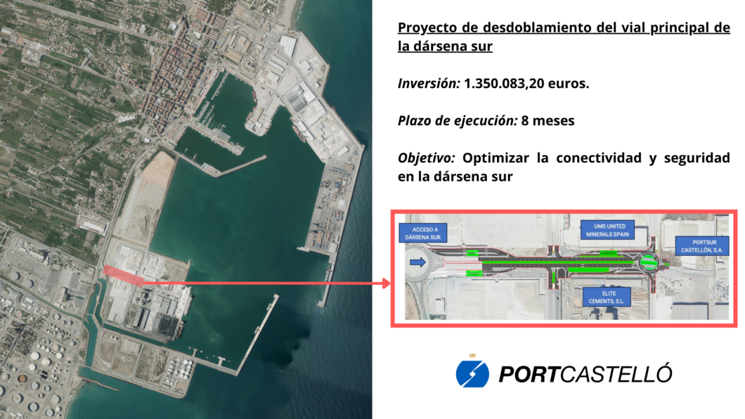 La Autoridad Portuaria de Castellón llevará a cabo una de las obras clave de su Plan de Infraestructuras con el desdoblamiento del vial principal de acceso a la Dársena Sur, una actuación que permitirá mejorar la circulación en la zona y garantizar una mayor seguridad para el tráfico de mercancías. La inversión total asciende a 1.350.083,20 euros (IVA incluido) y el plazo de ejecución será de ocho meses.