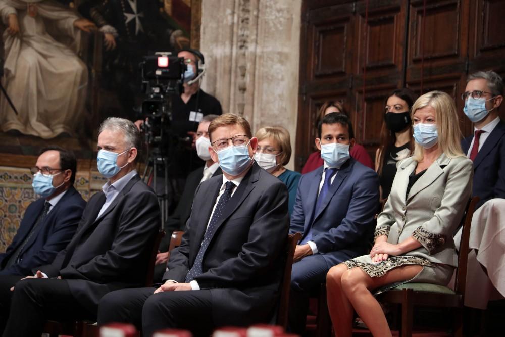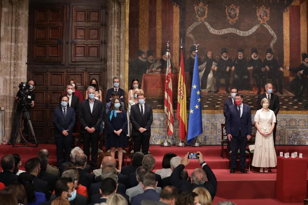 El president de la Generalitat Valenciana, Ximo Puig, ha comparecido en la celebración de las distinciones por el 9 de octubre haciendo un repaso al último año por la Comunidad: "Los valencianos hemos superado guerras, adversidades y cuando menos lo esperábamos, la Covid-19 con la incerteza de no saber qué pasaría. A pesar de todo, los valencianos han resistido. Ninguno esperaba el dolor que íbamos a pasar, hemos resistido desde la serenidad con sentido, sacrificio y solidaridad". Con un mensaje esperanzador, ha asegurado que "damos un nuevo paso a una nueva vida" a partir de este 9 de octubre.