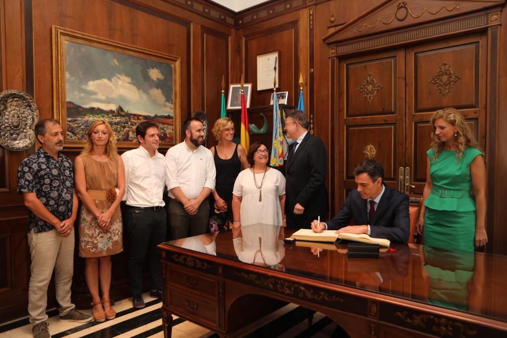 En el despacho de la alcaldesa firmó en el libro oficial del Ayuntamiento. Apenas permaneció dentro unos minutos… la agenda era apretada… faltaba la reunión con Sánchez y esperaba el Fib en Benicassim.