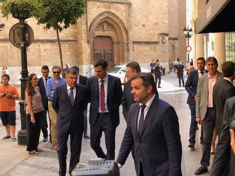 De nuevo carreras, fotografías casi robadas al vuelo, y formación en la delegación de la Generalitat, donde Ximo Puig y Pedro Sánchez realizaron su entrada.