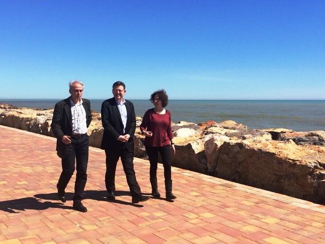 El candidato socialista a la Presidencia de la Generalitat ha comprobado in situ el estado del paseo marítimo de la localidad tras el temporal