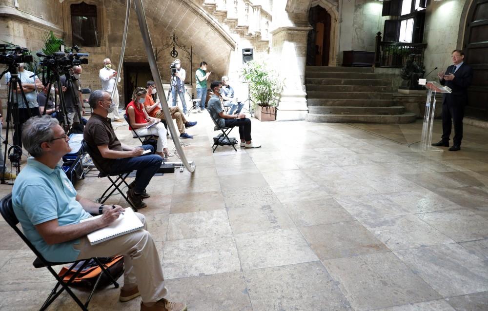 El president se ha referido además a la relevancia del "aval" otorgado por Alemania a la Comunitat Valenciana como destino turístico seguro, simbolizado en la visita del pasado martes del ministro de Asuntos Exteriores de Alemania, Heiko Maas, la primera de un representante de un gobierno europeo a España tras el levantamiento del estado de alarma.