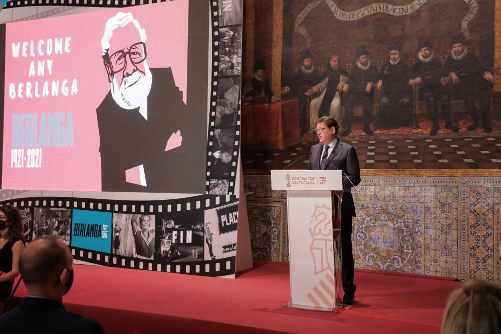 Durante su intervención, el jefe del Consell ha explicado que la celebración del Año Berlanga tiene como principal objetivo "redescubrir a un artista total; darlo a conocer entre los más jóvenes, y volver a disfrutar con su cine".