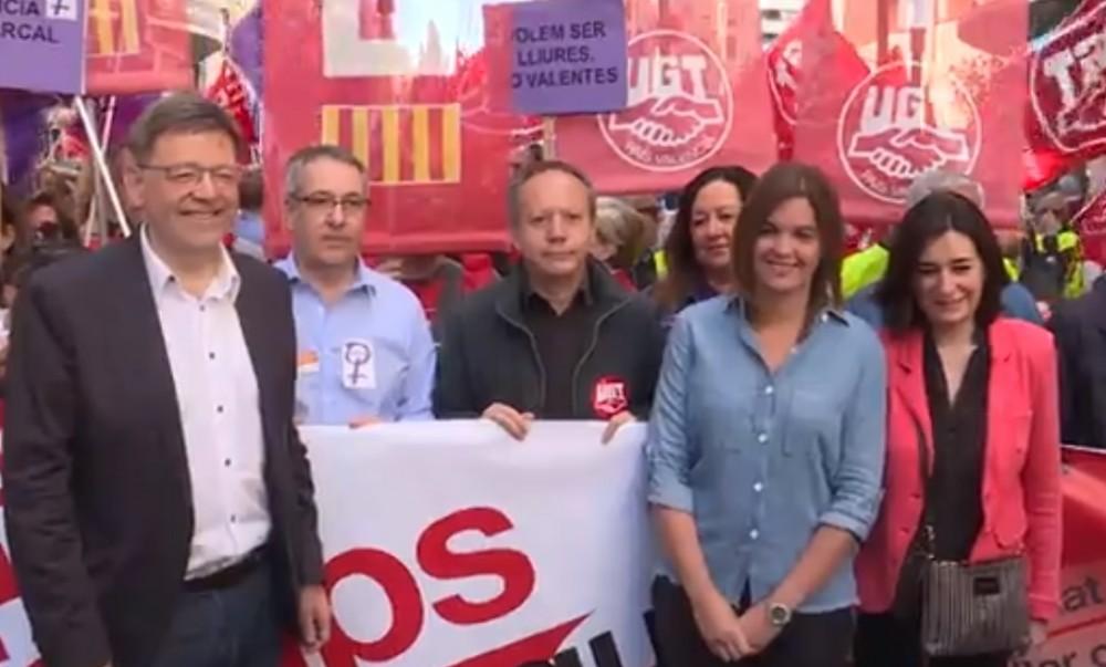 A la manifestación también han asistido la vicepresidenta del Consell y consellera de Igualdad y Políticas Inclusivas, Mónica Oltra; el conseller de Hacienda y Modelo Económico, Vicent Soler y la consellera de Sanidad Universal y Salud Pública, Carmen Montón.