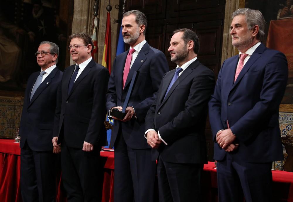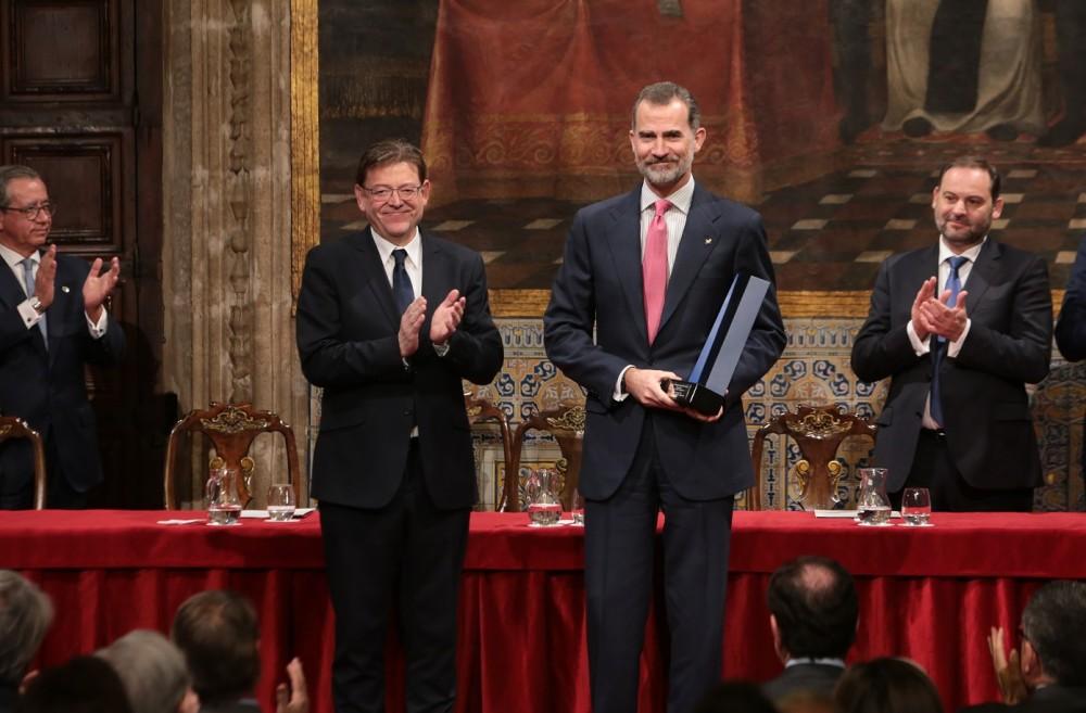 El ministro de Fomento, José Luis Ábalos, ha entregado, en un acto celebrado hoy en Valencia, el XXVII Premio de la Convivencia Manuel Broseta a S.M. Majestad el Rey, Felipe VI, por la valentía y determinación con que ha defendido, y defiende a diario, los valores de libertad, igualdad, justicia, convivencia y respeto a la pluralidad.