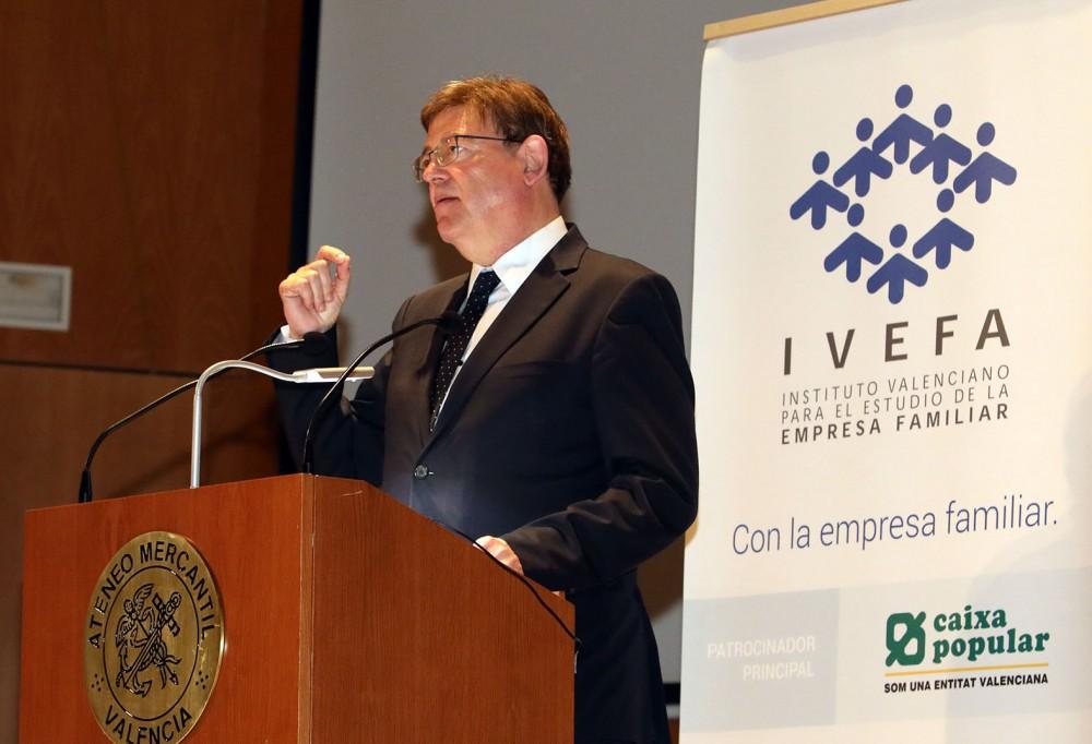 Puig se ha pronunciado así durante la clausura de la Asamblea General del Instituto Valenciano para el Estudio de la Empresa Familiar (Ivefa), donde ha recordado que las empresas familiares suponen el 91 % del total del tejido empresarial de la Comunitat.