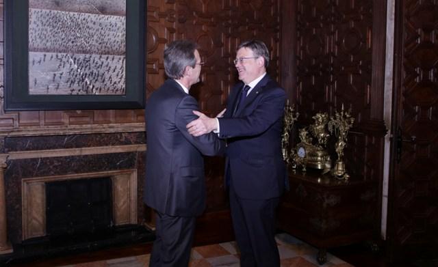 Durante su encuentro, Puig y Gual han realizado un balance óptimo de la evolución que está experimentando la economía valenciana, del liderazgo que mantiene en destacados sectores de la economía española y de su decidido impulso exterior.