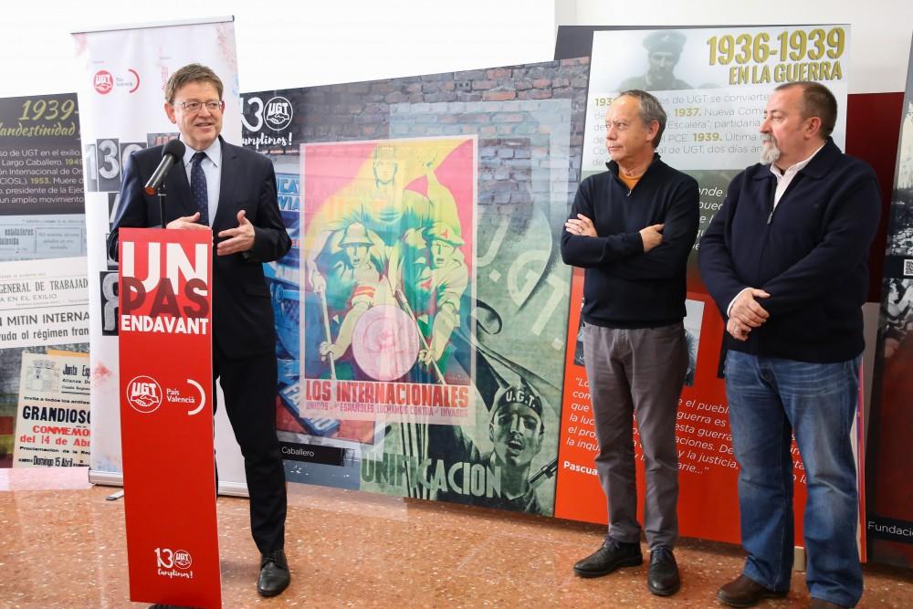 El jefe del Consell ha asegurado en la exposición '130 años de luchas y conquistas', que conmemora el 130 aniversario de UGT, que es "fundamental" el conocimiento histórico para "saber quienes somos" y plantear un futuro con "más justicia y libertad".