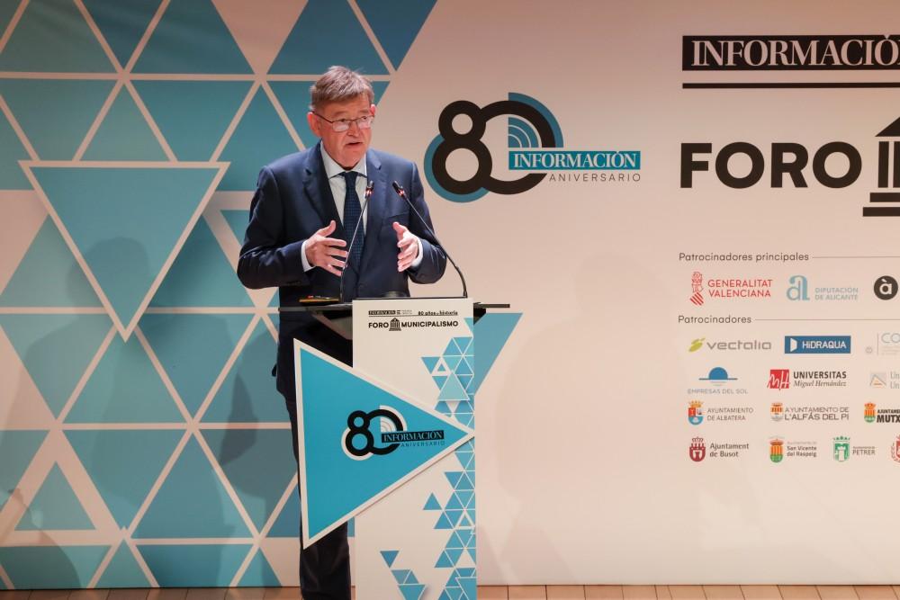 El president de la Generalitat, Ximo Puig ha ratificado la apuesta del Consell por el Fondo de Cooperación Municipal como instrumento que garantiza el municipalismo y su suficiencia financiera, durante su intervención en el Foro de Municipalismo, organizado por el diario Información.