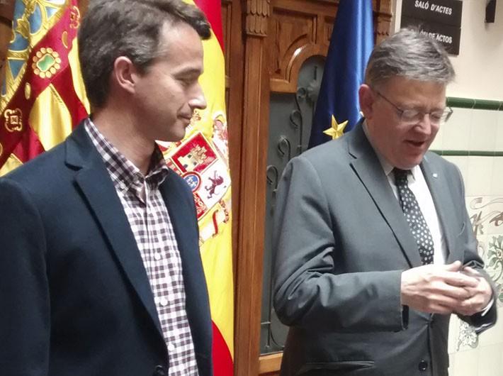 El President de la Generalitat, Ximo Puig, se ha reunido esta mañana con el alcalde Vilafranca, Óscar Tena.