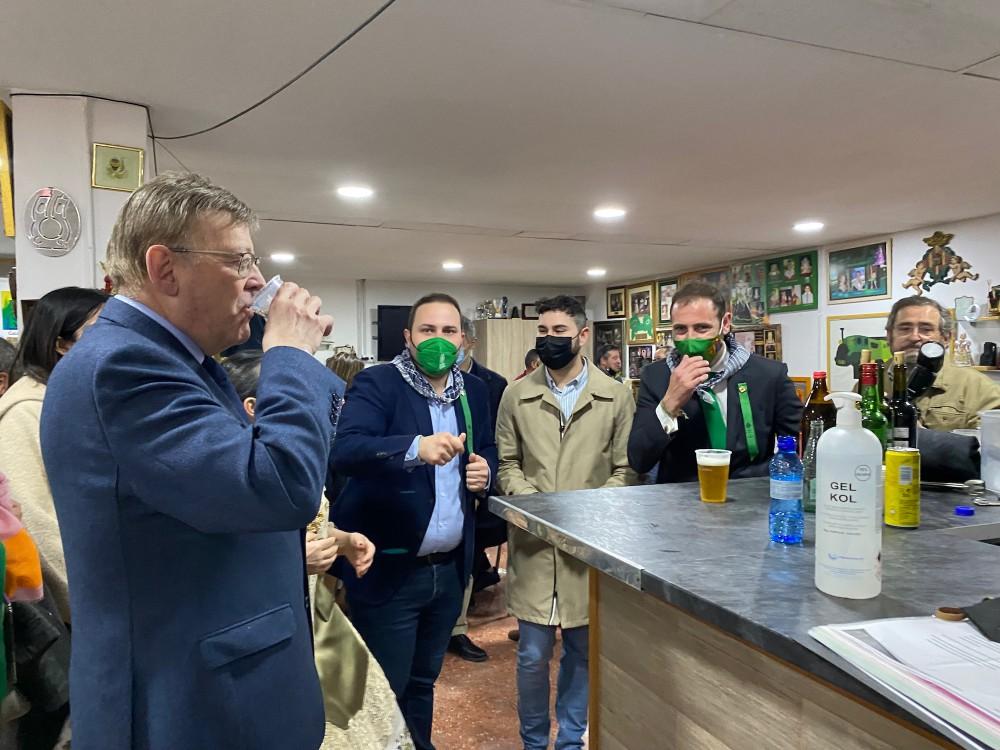 Y para finalizar la visita, ¿qué mejor que tomar algo todos juntos? Por cierto, Puig no pasó del agua, porque entre la cremá de Valencia del sábado y la Romería del domingo, arrastraba un señor catarro festero.