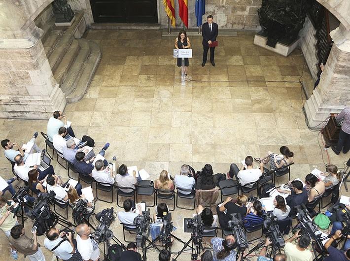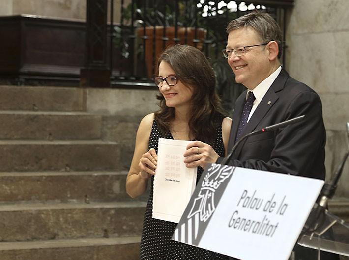 El President de la Generalitat, Ximo Puig, y la vicepresidenta del Consell y consellera de Igualdad y Políticas Inclusivas, Mónica Oltra, han defendido la cohesión del Consell tras el primer año de gobierno, desde que ambos tomaran posesión de sus cargos junto al resto de consellers el 28 de junio de 2015.