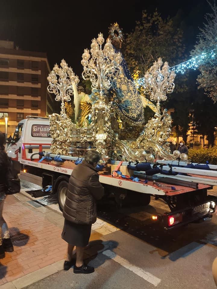 La imatge de la Puríssima del Poble deixa la Casa Social per a ser homenatjada durant dotze dies a l’Arxiprestal