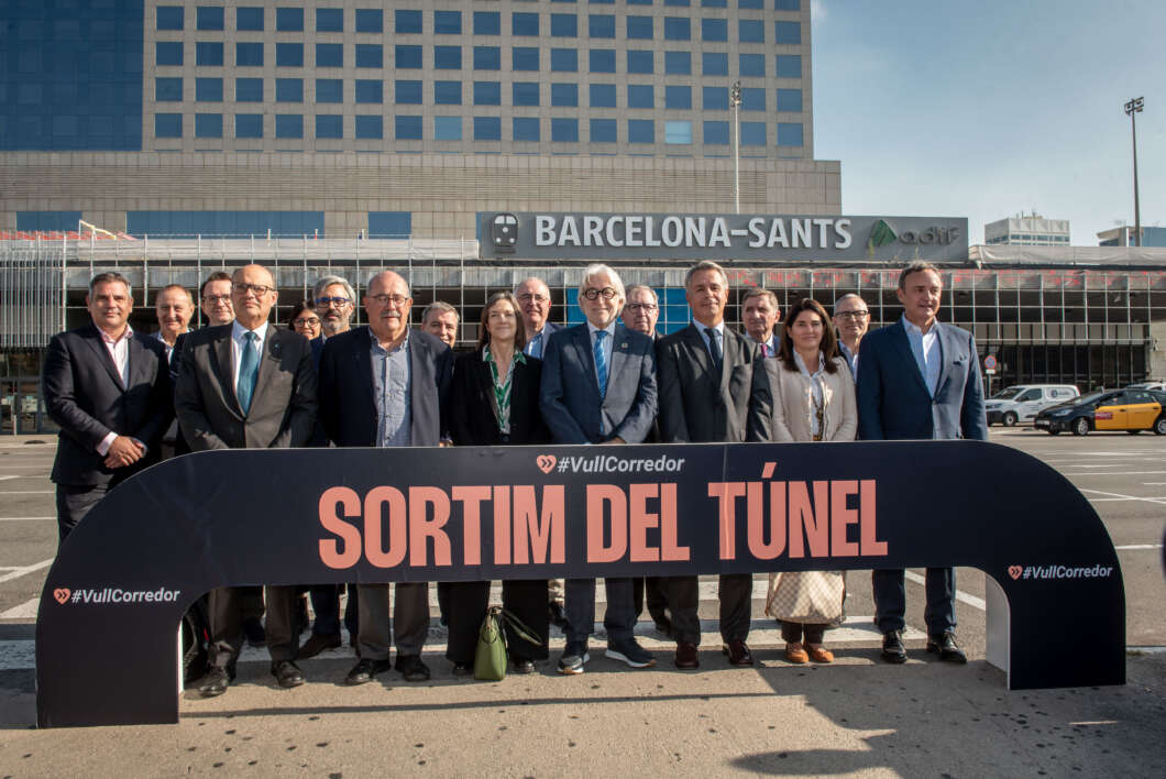 Tras los encuentros en Valencia, Cartagena y Pulpí, el movimiento #QuieroCorredor reúne frente a la estación de tren de Barcelona Sants a líderes empresariales y representantes de la sociedad civil para reclamar la finalización de las obras del Corredor Mediterráneo