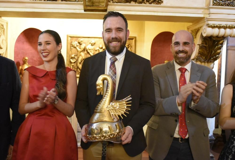 La Germandat dels Cavallers de la Conquesta ha celebrado esta tarde el acto de proclamación de Jaume I, figura que este año recae en el concejal socialista Rafael Simó i Sancho, cavaller Pere Masquefa. El acto de transferencia del casco del Drac Alat se ha realizado en el salón de la Chimenea del Real Casino Antiguo Castelló a cargo del predecesor, el también regidor, del PP, Vicente Guillamón. El evento ha contado con la presencia de Violant 2018, Ana Goterris i Estrada, de sus 'dones de companya',del Prohom y del Capítol de la Germandat.